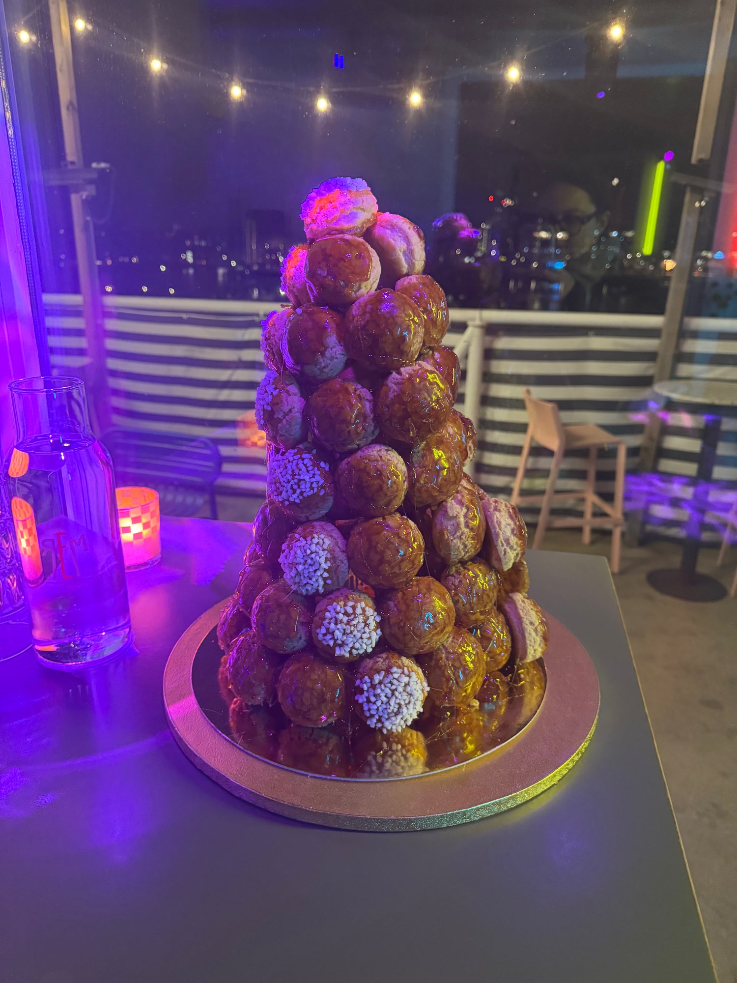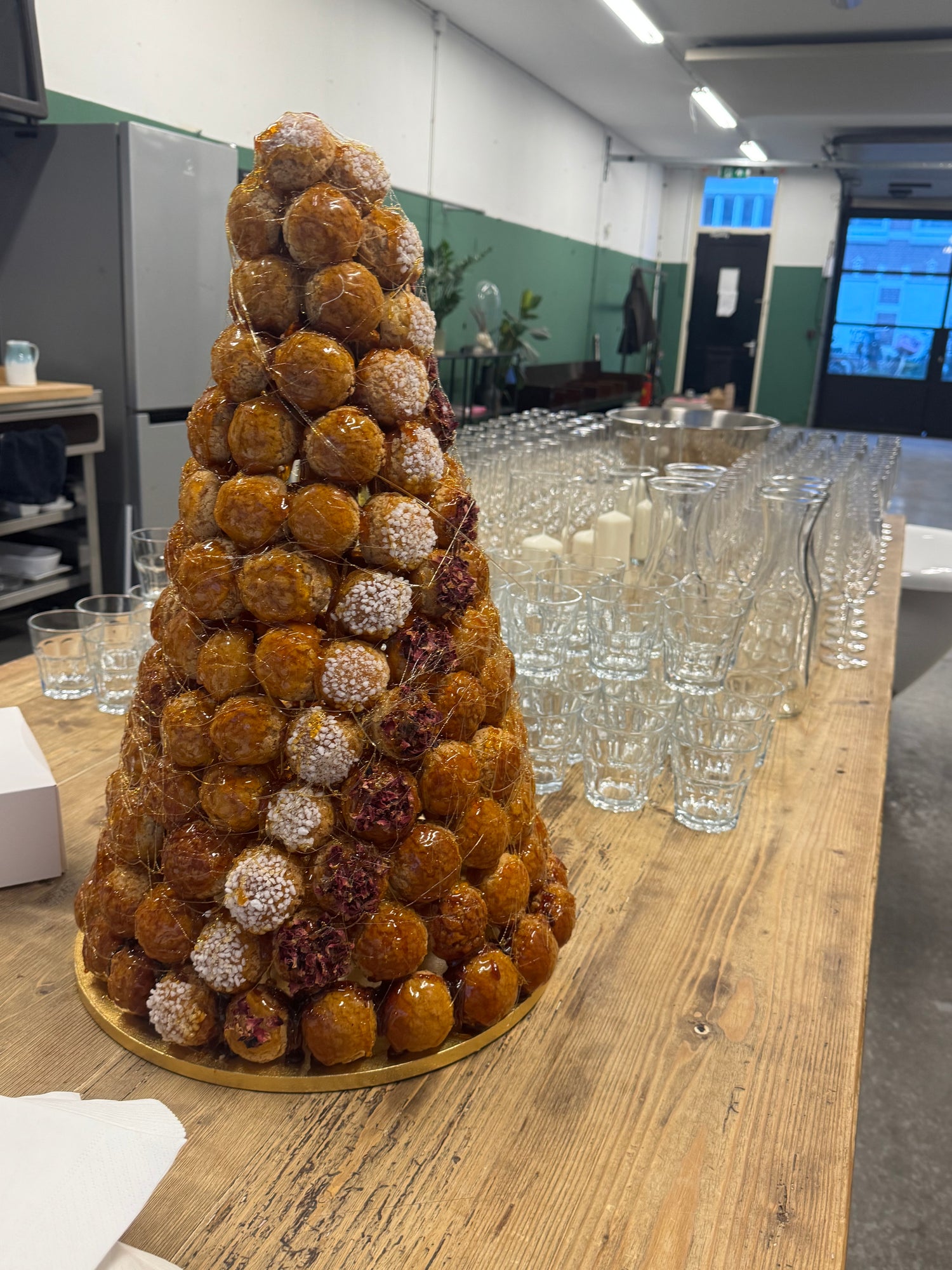 Decorations: Caramel spun sugar, sugar pearls & dried flowers